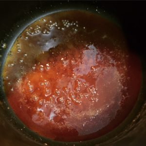 I don’t recall making caramel before, and though it’s actually quite simple to make, I was nervous. (I appreciated Molly’s soothing direction to “don’t be afraid” within the recipe instructions.) To start, I added ¾ cup of sugar and 2 tablespoons of light corn syrup to a medium saucepan and set it over medium-high heat. There isn’t much to do then, but to wait for it to begin to melt together and become caramel, swirling it to ensure all of the sugar dissolves into it. For me, this process took about 8 minutes and I had a dark, rich caramel ready to go.